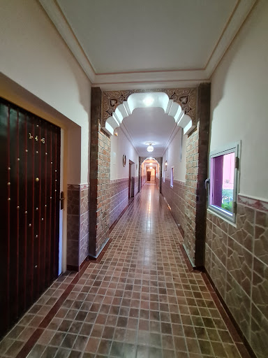 On approaching the hotel I was afraid it was deserted. At least it looked that way. It is a big complex and it must have been a splendid cluster of buildings in its time. But this must have been a long time ago. ||The hotel building surrounds a large central court with a pool. There are a number of staircases leading to a few rooms each, the rooms are numbered erratically, so that one must be lucky to find the right one. And of course, one is looking for the room with their luggage, because there are NO ELEVATORS! Well, practically it would be impossible to have them as the rooms are totally dispersed. ||The room, like the hotel as a whole, was spacious enough, but everything in it was old, old ... Not only new equipment, the hotel is also in urgent need of repairs, beginning with broken tiles and going on endlessly. ||The staff was polite, the food was not as good as in other hotels of the same rank in Morocco. There was not much choice and the restaurant was lit so poorly that we could hardly see what to take. The choice at breakfast was also very limited, mostly to butter and very sweet jam. There was some quite stale pastry, too. Really not good enough for a four star hotel,...