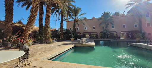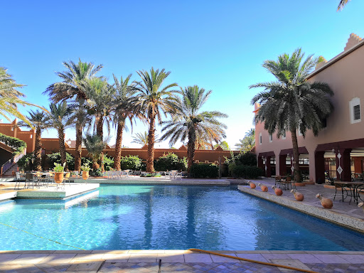 Read moreEn nuestro periplo viajero por el Sur de Marruecos en un grupo organizado, nos toco estar un día en este hotel.||Solo al llegar te encuentras que es un antiguo(Castillo-Palacio) rodeado totalmente de una muralla, con un amplio palmeral, que es el que continua del inmenso y espectacular palmeral de Zagora.||El hotel Castillo, desde fuera es bonito, y realmente centrico, y puedes darte una vuelta, sin ningún problema de cualquier movilidad lejana.|| En cambio la entrada fue bastante lugubre, las luces brillaban por su ausencia, y su aspecto era bastante viejo y un poco dejado.||Al llegar a las habitaciones que nos asignarón, la verdad que eran antiguas, muy viejas y dejadas de la mano de dios, es lo primero que advertimos, la cama super antigua, algunos enchufes no funcionaban, el mini bar estaba de adorno, tampoco no funcionaba, paredes descorchadas, y la puerta ventana que daba a una galeria llena de flores y plantas, rota, desvencijada y facil de abrir desde fuera. Lo unico positivo era el lavabo medianamente moderno y correcto. Eso si, para entrar a la bañera, tienes casi que saltar, por su inmensa altura.||Los muebles de la habitación son muy antiguos, algunos carcomidos por el paso del tiempo, pero como pongo en el titulo del enunciado, por lo menos tenían su encanto romantico, seguro que cuando se inaguro este antiguo palacio(Kasr), debían ser los mismos muebles y ventanas y paredes, y el paso del tiempo lamentablemente no perdonan a nadie.||El interior del hotel con su gran piscina, era lo más bonito del hotel, e impregnaba esa antiguedad evocadora que fue en su tiempo..||Mención aparte fue la cena, muy buena y a la carta, y el desayuno bastante bueno pero escaso.||En fin un hotel de cuatro estrellas, que por sus instalaciones, más bien podría ser de un tres estrellas, y la verdad...