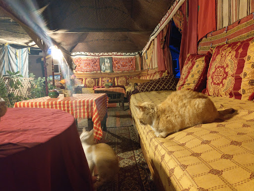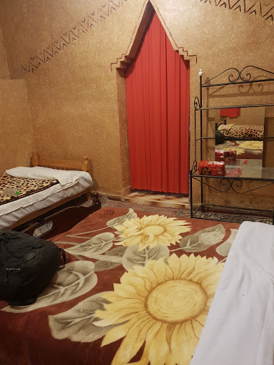 Read moreThis place has plenty of great reviews and is set up very nice. It's got an interesting type of layout with tables and lounge areas. ||||Positives:||- nice layout||- variation of rooms||- good cooking tho no menu and more pricy than street food but to be expected. Still as always in Maroc make sure to ask about the prices.||-very large place|||||| Negatives:||-wifi doesn't work in the rooms at all||- no hot water||- super dirty showers and bathroom. The walls in the shower were extremely dirty. ||- pillows without covers you can wash so you're sleeping on what the past 400 ppl slept on||- dirty rugs/floors in the "huts" ||-animals onsite don't seem to be fed or taken care of and the poor things are filled w bugs. I mean filled. ||- originally saw this on booking and kayak, it was listed for $17 which is about 180DH. We got there, they immediately ask us where we're from as apparently if you're from America, you're loaded w money...and they gave us a ton of hassle about the price. Coming up with every excuse in the book about why it's 200DH. They finally said ok it's fine. Then when we checked out less than 24h later they tried to charge us 200DH again... (also not sure why they were hassling so much about the price as no one else was staying there that night)||- had laundry done, told them we have to leave early am and our laundry didn't show up until 10am. We were waiting around since 7am for cafe, included breakfast and laundry. ||- also the show they put on right when we got there about the nomadic tribes complete w the fella they called in to do so, wanting to charge us crazy price of $150 per person for a one night desert trip. ||||Prices:||180DH for 1 night 2 ppl||70DH / person for dinner - salad, chicken kebab and fruit ||40DH Laundry ||||Wouldn't stay again, wish I could say...