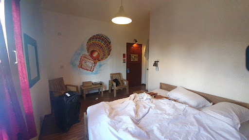 Read moreI am used to staying in other ostello bello as they are located in many countries. I love the idea that they are wheelchair friendly but sadly this place is not wheelchair friendly but the staff there is really really nice they went all out of their way to help me be comfortable ....so first of all the restaurant or you make call it a sitting area at the entrance has one step to climb, the rooms have 2-3 steps each to get into.... I was staying in a female dormitory luckily there was nobody Else so I had the whole place to myself....I was given a phone number of the reception person in case I needed any help at night.. since I was there only for one night it was fine I could manage...to get onto the pool area also there are about five steps so I did not even try to go there but all in all it was very clean and very modern the bathrooms are very modern if you are looking for a quiet environment you should come and stay in this place.... They have some games like carrom board and other table games... Yes the morning breakfast was a good layout with croissants bread egg fruits like banana and Orange... I did go to there other hostel branch which is just 10 minutes walk that place is quite wheelchair friendly probably they have one or two rooms which are accessible with a wheelchair but they were in renovation ....this place is more happening in the night so one can go for drinks out there... and if you want all the happening, noise and party then you should go to this other branch which is 5 to 10...