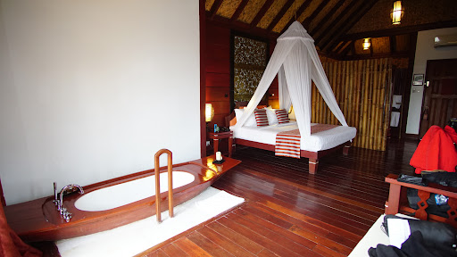 ===Overall===||You feel like you're in a painting. The landscape architecture and the rooms were all stunningly beautiful. I strongly recommend this hotel to couples and families looking for some peace and quiet in unique wooden boat-hotel rooms. ||||===Room===||Extremely cozy with great views. Also has a bathtub. Beautiful room made of wood. There is a caveat for the rooms being on a lake though. Mosquitoes. Lots of them. The room had a electric mosquito repellent and a mosquito net over the bed. Nonetheless, good idea to bring your own repellent that you can spray on to your skin. You'll need it during your trip in Myanmar anyways. ||||===Service===||Very helpful hotel staff and friendly restaurant staff. ||||===Food===||We had breakfast and dinner here. Both had variety and were tasty. Their wine was pretty good too!! ||||===Drinks===||The hotel bar didn't disappoint either. There were drinks on happy hour that were very unique and affordable. ||||===Location===||Located on the west side of the river. There's nothing much in the vicinity, which makes the hotel extra serene and quiet. I think you can rent a bike from the hotel but we asked to arrange a boat/canoe taxi to do the standard tour of Inle Lake as well as when we wanted to go to the "downtown area", located north of the lake. The purpose of our trip was to decompress and relax so the serenity of the hotel was perfect for us. The hotel has a spa and massage parlor but we didn't sign up for that. If you are looking for more parties and nightlife, then maybe this hotel is not the best choice for you and I recommend looking for hotels on the main road north...
