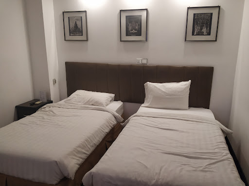 This hotel is a fine option for an overnight stay near the airport. Our room was on the 5th floor and note that there is no elevator. However, the liftboy took up our baggage after we arrived. Both room and bathroom was clean, also quite modern looking. There are some English channels on TV. Staff is very attentive and the manager (or I suppose it was a manager?) could speak good English (the other members of staff didn't always seem to fully understand us, but is a common problem in whole Myanmar. We also had dinner in the restaurant which was quite tasty and prices were reasonable. We were not impressed by the smell when we opened the fridge, so we didn't even dare to use minibar. We read on TripAdvisor before that when you order that you want English breakfast at check in, you can have one instead of the Asian style breakfast (since it was our last day staying in Myanmar, we hoped for something European....). The manager told us we indeed could have it, and that it includes cheese omelette, bacon, hash brown and beans. The unpleasant surprise came in the morning, when we were served fried eggs (no cheese omelette at all, and they were even too dry), NO bacon (well, it is the most important thing about English breakfast, isn't it?), rather cold hash brown and some beans in tomato sauce that were ok. We complained we were told to have bacon, but we only heard "sorry" and that was all. So the only 3-ingredient-English breakfast really didn't have much in common with English...
