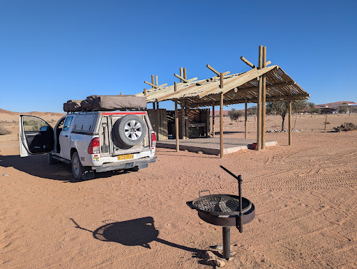 Read moreIf you're looking for the perfect Sossusvlei camping experience, then look no further than the Sossus Oasis Camp Site. It is located just outside the Sesriem Gate, making Sossusvlei extremely accessible, and the campsite almost feels like a desert fairy-tale that definitely should be at the top of your list. Each of the private campsites are like their own mini oasis with each having a rustic yet beautiful private ablution, kitchenette, and "braai" (BBQ) area. The campsites are spacious and are suitable for tents, bush-wagons and caravans alike; even including a paved roof-covered area providing some reprieve from the sun. Each site is strategically positioned to face the desert (some better than others) ensuring all guests have beautiful views and the best seats in the house for unforgettable sunrises and sunsets. It isn't just the private campsites that make the campsite so special. They have a refreshing swimming pool for you to cool off at as well as the Sossus Oasis (reviewed separately) nearby which serves as a fuel station, convenience store and check-in area for the campsite. Keep in mind that wildlife are able to roam freely, and we were lucky enough to see Oryx as well as a Fennec Fox nearby our site. Also watch out for the jackals, especially in the evenings, as they're notorious bin raiders. I recommend you secure yours with heavy rocks to avoid any surprises. Camping at the Sossus Oasis Camp Site was an unforgettable experience, and I will most definitely be back if I ever have the opportunity of visiting...