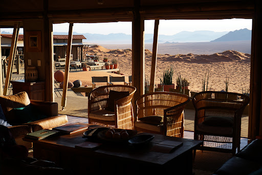 We are staying in Wolwedans Dune Camp four nights. As stated in the Wolwedans Dune Camp's description on their homepage: ”Positioned on the edge of a 250-metre high dune, Dune Camp has the most extraordinary views across the Namibrand [Nature] reserve. The main areas are spread out across a series of interlocking decks ensuring that the lounge, dining area and tea room all enjoy views across the endless dune landscape to the mountains beyond." ||Dune Camp is part of the exclusive Wolwerdans Collection of Camps. Or as they also write "Wolwedans is more than a collection of camps. It is a collection of dreams. In this land of blue skies and endless plains you will find beauty to feed your soul, tranquility to clear the mind, and space for your imagination to fly. You may feel completely overwhelmed at first, but then quickly settle into a landscape and immersive experience which is ‘simply out of this world"||There is some truth in that statement; the location on top of the red dunes with a view of the plain and mountains in the distance is absolutely enchanting. In all directions we see spectacular scenery! However, it comes at a price (8200 NAD per person per day). E.g. some of the guests choose to arrive by private plane at the local airstrip. Others opt for butler and own staff.||We stay in the "tented room". The generous tented room is built on wooden platforms raised off the ground. It´s comfortable and spacious, with a kingsize bed as well as full indoor and outdoor bathrooms. There is no coffee station, but a thermos is provided every night. ||Outside, we have a generous deck which allows for plenty of lounging around, but unfortunately, there is not a lot of privacy. You can easily watch your neighbours - and the other way around (!) Not perfect design and perhaps the most important minus regarding this camp.| |On the very positive side, you have a “Wolwedans Chiller”, which is a water-filled silo to cool off during hot summer months. We enjoyed this feature very much.||Also, you have full board and activities included in the rate, e.g.: Morning and evening scenic drives, Wolwedans desert sundowners, "Heart and Home village tour" (visit to the Wolwedans Village), full day scenic safari, bushman walk, and E-biking.||We opt for the visit to the Wolwedans Village, where the owner Stephan explained the whole philosophy behind Wolwedans. Very impressive work and recommended tour. We also did the desert sundowner and a very fast bushman walk. However, most of the time, we just enjoyed the most extraordinary views across the Namibrand Nature reserve, from the main buildings and from our own wooden platform surrounding the tent.||very night, we had nice (but quality wise not very extraordinary) dinners on the wooden main decks overlooking the desert and starry sky! Also, a overlooking a nearby water whole. Before dinner, always sunset + G&T around the fire together with other guests.||On the full day excursion, we went to the North-eastern corner of the nature reserve with our pleasant and knowledgably guide Jacks. We had a scenic drive over the vast plains to a quiver tree forest at the foot of Mt Nubib Berge, actually this Quiver tree forest was much more impressive than the famous one near Keetmanshoop which we visited several years earlier (in 2009). ||In conclusion, Wolwedans was a pleasant acquaintance, and we would like to come back once more. However, given the high-end price tag, Wolwedans staff need to pay more attention to details; not the number of gadgets or fancy facilities, but e.g., make sure; tents/rooms are in perfect shape every day with clean towels (change dirty on the floor), full refrigerator, and hot warm water every morning (e.g., outside the tent) rather than the lukewarm water from the night before. It is also a annoyance that you are not properly shielded from other guests on the private terrace in front of your tent. ||Also, the service was always friendly, but certainly not always of the same high quality (some inexperienced staff).||PRO's|- Fantastic and completely unique location in the desert|- Total relaxation and tranquility|- Focus on employee well-being and training in Wolwedans Village|- Focus on local raw materials and a sustainable strategy||CON's|- Tents not properly shielded from neighbours, who have free access to watch each other on the wooden sundeck|- A little too little attention to detail (read above) - given the high price tag|- Some variations in the quality of service provided by staff - given the high price tag| |But bottom-line, we would love to come back...