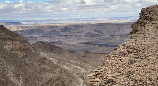 Read moreThe highlight of our trip to Namibia! We spent the first night at the lodge itself. We were welcomed on arrival by the very friendly and helpful staff. After welcome drinks we were shown to our beautiful room with fabulous views. Dinner and breakfast at the lodge were delicious. The next two nights we spent in Camp Eternity and Camp Edge. Before we reached them though there were tough days of hiking to be done - we reckon we covered between 16 and 18km each day over some pretty steep and rugged terrain. Justice our guide was incredibly knowledgable about the flora, fauna and geology of the area. Even in June we saw ostrich, springbok, baboon, klipspringer and even some leopard tracks. Picnic lunch was eaten by a beautiful pool in the river bed, ideal for some (chilly) swimming. Reaching the camps each evening was a wonderful experience - like no camping we have done before. Tea, coffee and biscuits were waiting for us on arrival swiftly followed by gin and tonic and subsequently a three course dinner. Tents with comfortable stretcher beds and duvets had been pitched inside stone gabions, protecting them from the wind. The night skies were unlike any we had seen before - zero light pollution treating us to an exquisite display of stars, shooting stars and the Milky Way. The daylight views from Camp Eternity were enormous, and approaching Camp Edge we were thinking this is a pretty dramatic location, but it was as we stepped onto the deck and looked straight down over the rim - it turned into a literally breathtaking, ‘oh my goodness’ (or words to that effect!) moment. The third day of hiking was an easy 10km hike back around the rim to Fish River Lodge, where we had lunch before finally having to depart.||If you want to get up close to the flora and fauna of the canyon, earn your G and Ts in the evening and have the experience of a lifetime - this really is it! We cannot recommend it...