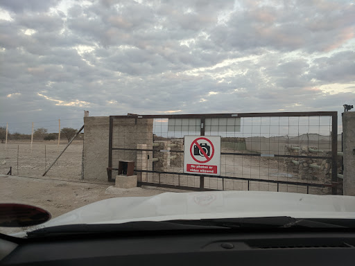As you enter the property you are greeted with "No photography!" signs, fencing and guard towers, which right away suggests there is something the owners don't want the outside world to be seen. Odd, our first time seeing this in Africa.