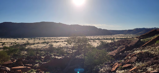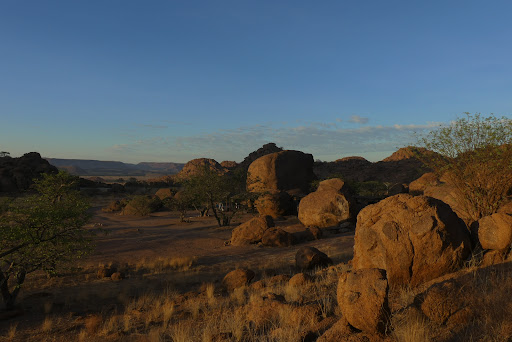 Great location, beautiful views of the surrounding mountains and the savannah in the valley. We were on site 1 - and it was fantastic. The Hilux and roof tent were parked under a tent-like carport next to a large rock. Next to it - also in the shade - the kitchenette with running water, light and power socket, a permanently installed table and two benches. The sanitary facilities are built into the landscape behind a rock, color-coordinated with the surroundings, with warm water in the morning and evening (a site employee comes by especially to heat the water). The lodge is within easy walking distance and there is also a small circular trail with explanations of the flora and fauna. If the booking situation allows, campsite users may eat at the lodge, but this is not guaranteed. We had a drink there at lunchtime and went to a wide rocky outcrop from where you can gaze into the distance. It is said that a pool and a store are to be built at the campsite - we hope that it will be just as hidden as the place we had. We were able to enjoy nature and the quiet atmosphere without really being alone - we only saw that there were other guests on the site from a...