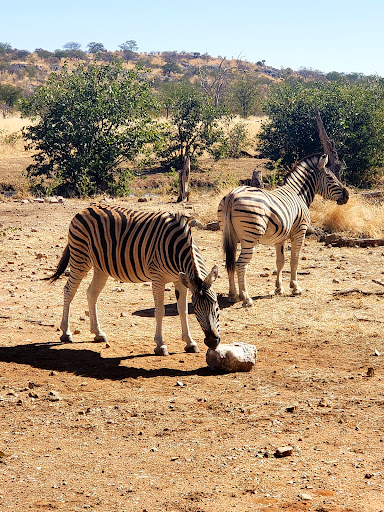 We landed at the Ongava airstrip to be welcomed by Binius, our guide for the next few days, replete with tea and biscuits in the shaded waiting room. ||After enjoying morning tea, we headed off to our accommodation at the Ongava Tented Camp (OTC), which is within the Ongava Game Reserve adjacent to the Etosha National Park. Some of the many wild animals who call this area home heralded our arrival, including oryx, zebras, and vultures, and as our 4WD vehicle made its way along the dusty road we knew we were in for a treat.||Upon arrival we were met by the camp manager Orlando, who provided cool towels and drinks as refreshment after our short drive. ||After check-in and a camp safety briefing we visited the dining area for lunch, which we enjoyed along with our pilot Romeo, who stayed at the camp in a separate guide's quarters. The reception and dining areas are adjacent to a watering hole, and as we ate lunch we were treated to zebra, giraffe, impala, waterbuck, and helmeted guinea fowl, popping in to quench their collective thirsts.||It was a warm winter's day, and this brought out the hyraces, small mammals whose comical behaviour whilst bouncing over the rocky slopes was a delight to watch. Those we saw were about the size of an Australian possum, and they seemed friendly enough.||When moving between buildings we were advised to stay on the paths because the camp is unfenced, and if moving after dark or before sunrise were told to contact reception to organise an armed escort. Following a guide armed with a rifle and an ammunition belt studded with large bullets was an unusual but necessary aspect of our stay.||Our evening game drive with Binius was joined by fellow travellers Mauricio and Katarina from Milan. We were treated to black-faced impala, waterbuck, warthog, and helmeted guinea fowl. The highlight, however, was seeing two male lions enjoying the afternoon sun. These guys have two prides which they service, and from all appearances they were quite comfortable with their lot in life.||Back at camp we were treated to the ubiquitous (but VERY enjoyable) sundowners, followed by a buffet barbecue dinner, complete with steak and chicken and assorted salads. Our drinks were included, so we sampled some of the large variety available, including lovely scotch whiskies and some beautiful African wines. Nice!||Time for bed, and under armed escort we made our way back to our tent. When I say tent I really mean a luxury timber cabin, complete with indoor and outdoor showers, stylish bathroom and large twin beds surrounded by mosquito netting. Surprisingly there were no mossies to be seen as the area had had very little rain, so deployment of the netting was not required.||Around 3am I awoke to the sound of a roaring lion who seemed to be just outside the tent, and as the hairs on the back of my neck stood up I remembered the emergency air horn that was provided to alert people should a dangerous animal approach too closely. Happily, I didn't need to resort to sounding the alarm as the roaring stopped as quickly as it started, but it did take a short while before I was able to get back to sleep.||Up early, and as we were being escorted to the dining room our guide pointed out leopard footprints in the sand near our tent. He told us there was a leopard that frequented the waterhole, but it rarely entered the camp while ever there were people visible. I recounted my story about the previous night's lion encounter, and he said he had also heard it, but he considered it to be a long way from the camp. Their sound travels far in the cool, dense, night air!||We left early for our drive to the Etosha National Park and saw many native animals, including zebra, white rhino (square-lipped grazers), black rhino (hook-lipped solitary tree browsers), giraffe, lion, Kori Bustard (the heaviest flying bird in Africa, up to 20kg), southern pale chanting goshawk, kudu, oryx, springbok, impala, honey badgers digging and foraging, and White Elephants, the largest elephants in the world.||We learned that a group of zebras is called a "dazzle", a group of rhinos is a "crush", and a group of giraffes is a "tower", or "journey" if they're on the move. What would you call a group of totally gobsmacked tourists in a 4WD vehicle? ||The Etosha Pan, meaning "great white place", is the third largest pan in the world, after Utah and Alaska, and can be seen from space. It is 4760 square kilometres in area and was once filled by two rivers â the Okavango and the Kunene, that now flow to the Delta and the Atlantic Ocean respectively. It is empty 99% of the time and is a saline desert without vegetation. Animals come to the edge to lick the salt only, and people are not allowed to walk on it, nor cross it. It is very dusty and in summer can reach 55 degrees Celsius, and down to around 1 degree C in winter.||On the way back to camp we saw many helmeted guinea fowl in the reserve, plus two dark elephants, then as we sipped our sundowners on the lounge deck we watched as first giraffes, then a rhino mother and calf arrived to drink from the waterhole.||The next morning's game drive saw us come across an ex-zebra. All that remained of this once glorious beast was a rib cage, neck vertebrae, and skull, proof positive that these animals, whilst in a game reserve, are indeed wild.||We saw the white rhinos again, some steenbok (second smallest antelope after dik-dik), baby giraffe and mum (giraffe mate for life, and the young stay with mum until 1-2 years, then join the male herd, or stay with mum if female), a zebra with its two-week-old foal, red hartebeest, kudu, and waterbuck.||After lunch we treated ourselves to manicures because our skin was so dry, during which two elephants walked right past our tent! ||The afternoon game drive was the best ever! We continued our search for the lion pride and found them resting in the sand with their huge, full bellies. After they got up to leave we followed them to the old airstrip, wher