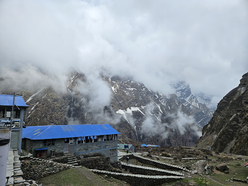 Macchapuchare Base Camp comes only 2hrs hike before Annapurna Base Camp. There are 3 to 4 lodges available at Annapurna Base Camp but those get full during season of September to November as there is heavy foot fall of Trekkers coming from across the world. So, one can choose to stay at MBC which has 4 lodges as per availability.I stayed at hotel Fishtail which beautifully surrounded by Himalayan Mountains. One can get facilities like wifi , hot shower ,good rooms (as per availability). Food is very expensive here as it is at almost 4000m altitude. The view from hotel's dinning area is unforgettable and in the evening those snow covered mountains looks like as if they are silver coated. Wow !! It was one of my best decision to take this route to experience...