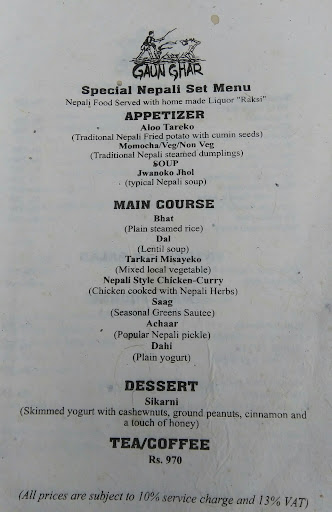 The owner if this restaurant is the 5th generation of merchants here. His great grand father used to take the train to Mumbai to purchase Italian fabric among other merchandise, and then about 50 porters would meet him at the border of India and carry them back here in 2-3 day's walk. They also got leather-related goods and gold from Tibet and retailers from 4 neighboring states would come here to buy products. They figured using mud and bricks to support timber would make sturdy architecture. The local set lunch was such a wonderfully delicious surprise that I left nothing on the plates. It was mild enough to my taste and yet with a variety of harmoniously presented spices. The yogurt with crushed pan-fried peanuts was such a perfect finale of this grand feast. I was not terribly stuffed, yet so sustaining that I wasn't hungry 9 hours after the meal! This utmost enjoyable meal revealed the possibility of union of the body, mind, and spirit, as well as the action, speech, and thoughts. What an...