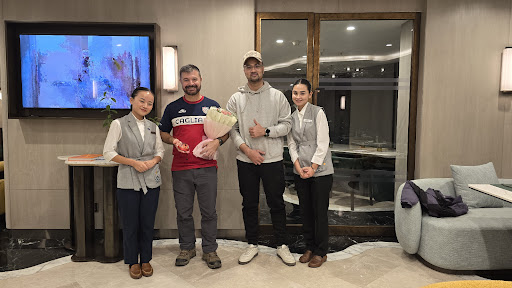 Starting with the lounge, and I wasn't able to catch everyone's name, but the entire crew was amazing. From the chef explaining his amazing creations every day to the staff who were literally taking care of every little need, I was awestruck at the level of service. Thanks to all.