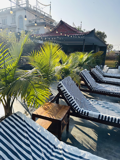 Read moreI did not stay in a room at this hotel but saw one or two rooms that friends were staying in, and the accommodations were comfortable and high-end. The restaurant is also worth a visit, even for non-guests; some dishes have earned the restaurant return visits from me or my friends. However nice the restaurant is (high ceilings, pool-adjacent and picturesque), the restaurant staff was not prepared for many tables of hungry diners, and the food was sometimes delayed too long (45 minutes to one hour). So do not expect a fully relaxed dining experience here, if the restaurant has many guests -- it does not, or did not, have an adequate kitchen staff for many (20+) diners. Also of note here is the well-staffed lobby and front desk, which will serve various coffees and pastries to anyone that asks. The lobby is 5-star quality and beautiful, perfect for business meetings or ad-hoc video interviews, for example. The outdoor dining area is also pleasant, with shaded areas in full-sun weather. The pool is available to paying customers for a fee. So you may schedule a birthday party with pool access, if you can afford the rather high per-person fees (about NR 600 as I recall). Lastly, the hotel also contains the facilities of a defunct Tibetan monastery. The temple is slightly maintained i.e. tormas are offered once in a while. If you want to sponsor a yoga class or ritual, the temple is available. The temple murals are exquisite, showing the lineage gurus and other deities of the Karma Kagyu tradition, making this disused temple more memorable than most functioning Gumbas in the area. It's sad that the monastery did not succeed and had to be converted into a hotel, but at least the new owners have maintained the temple and made it accessible to guests or...