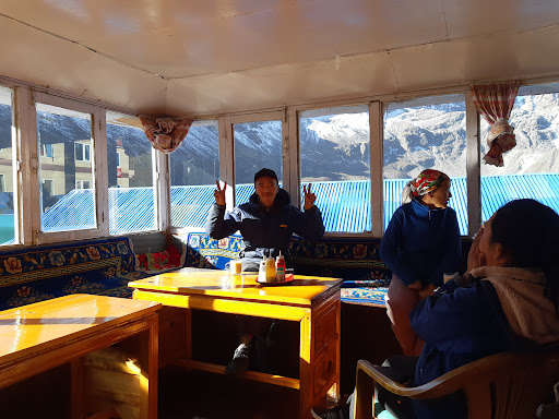 I have been to Gokyo almost 10 times and I tried at least 3 hotels and had meals at more than 5 restaurants here. But ever since I discovered this lodge, I have never changed!||||It might look ordinary compare to other fancy lodges, but the facility, food, accommodation is competitive with others. Most important, hospitality and honesty is something that keeps me there.||||The facility,||Their have the most comfortable and thick blanket I had in Khumbu. The room was not big, but you got everything you need in that harch condition. Most important, the rooms are clean. The sitting toilets are shared, but clean as always. The owners are trying to upgrading time to time.||||The restaurant,||The price is the fairest in Gokyo(Trust me)! The portions are generous and taste great. I especially recommend tomato cheese macaroni, fried rice and toast with fried egg! but You wont't disappoint even if you order other items! Owners never hesitate to keep us warm, the kitchen was always heated with fire!||||The hospitality,||Owners are a lovely family with a young couple and a cute kid. They are simple, honest, helpful and friendly! Not only one time, I had people in my group got sick, they try their best to support us. They see customers as guests and their own people and take care of us, which is the reason I keep visiting...