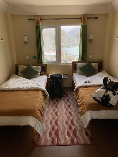 The little things around the lodge are just brilliant. There is a free oxygen/heart rate meter, scales for weighing your pack, scales for seeing how much weight you have lost, free sun screen, day packs in all the bedrooms for everyone to use, Pasang gives random free sound healings in the front room overlooking the lake, the toilets are spotless and smell divine, there are towels for wiping the toilet seat, the bedrooms are wonderfully designed with amazing beds, the rooms are insulated. The shower is really hot and has good power in a cute room. This lodge is simply amazing. A credit to Pasang for making a wonderful lodge with so much thought.