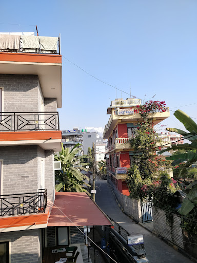 3-4 mins walk to main road, our bus could not be taken to hotel's main gate. Car can enter. Pokhara lake is around 10 mins distant.