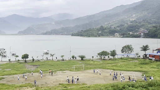 If you care about lake views, this place is hard to beat on Lakeside: every morning I would open the balcony curtains and get a full panorama of Fewa Lake, birds and lakeside life — people playing football and volleyball along the shore — which was simply wonderful.