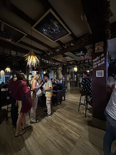 The decor and ambiance is shockingly good. The knick knacks and decorations tread the line between quirky and kitschy really finely while staying firmly on the quirky/fun side of things. Some of the quotes/decorations were downright funny (although having lived in China and Korea the Imperial Japanese flag on the ceiling came as a bit of a shock).