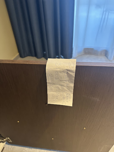 Anyway, to the actual review as I needed to rant about being deprived of water and a can of soda (??? why are they doing that seriously), as other reviews have said, the room has a smell. you can hear when other people in other rooms turn the water on. housecleaning knocks on your door loudly at 9AM and then don’t actually clean anything. they make the bed, leave dirty rags in the room (see pic 1), and don’t restock anything (see pic 2 of us begging for water and a refill of sugar???). Both slippers we got came with coffee stains on them? They definitely reuse them.. see pic 3/4.