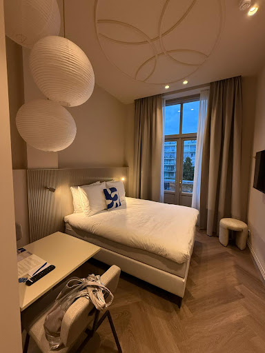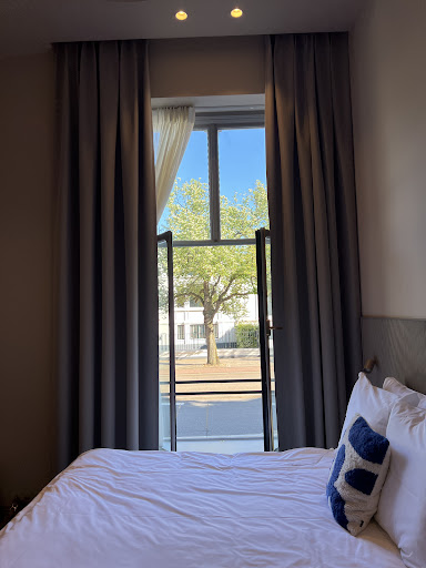 This hotel is an absolute gem in the embassy district of The Hague. The hotel has recently been renovated (that's why there aren't many reviews yet). It is located in an old house and during the modernization the builders managed to preserve the old flavor. When you enter you will see a wide staircase leading to the first floor, a table with chairs. It seems that you have found yourself in the 19th century. But then you go up in a modern beautiful elevator and find yourself in a small room with only 4 rooms. We stayed on the top floor, where the so-called Skylight Rooms are located. They are a little more expensive, but above you there will be a very high ceiling decorated with real old wooden beams. The room is equipped with everything you need - an induction hob, an oven with an electric grill, a microwave. Everything is absolutely new. Shiny new fittings in the stepless shower. The room was perfectly clean, despite the hot day, it was cool in it, thanks to the powerful and absolutely silent air conditioning. In the morning we enjoyed breakfast with buns freshly baked in the oven and coffee made in the Nespresso coffee machine. However, if you are too lazy to cook breakfast, you can order it to your room. And one more factor, a real rarity in The Hague: literally 300 meters away you can park absolutely free from 6 pm to 8 am on weekdays and all day on Saturday and Sunday. So, having come to The Hague for the weekend, you can save on parking, living in the city center. And a small minus: as in most Dutch houses, there are no curtains in the room. You can lower the blinds (using an electric motor), but then the room will be a bit dark. However, the house is located quite a long way away, so this is...
