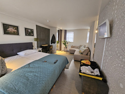 Read moreIn June we visit for 1 weekend this gorgeous hotel, together with 17 other family members. The rooms with all an own bathroom and in some cases including a bath were pretty and comfortable. Nice beds!! Towels are there. ||The ground floor is spacious and we could pick a place to sit in different corners, with all view at the historical square in the village. The kitchen is great and to use for groups or even better. The dishwasher is very fast!!||In the neighborhood there are all facilities that makes relaxing easy: Grocery shops next door, a butchery for organizing a BBQ, a bakery for fresh bread and a very good restaurant next door. Tickets for a swimming pool nearby is also offered. ||Also hiring bikes it possible - because cycling it is a must trough the very nice nature! ||The owners are such nice people and very hospitality minded! If you need any assistance to organize a whole weekend they come up with good suggestions! Also the music can be played by laptop, Ipad trough 4 nice boxes - so for a nice party all night long there are facilities as well! The bar in the middle is an eye catcher and give you to opportunity to pour your own fresh beer! ||Overall - I would recommend this place to family groups - but you can also book only 1 room....