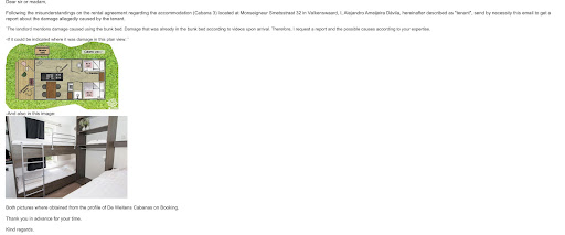 In the image attached, which was taken from their public listing, you can clearly see the bunk bed's condition matches what was observed during my stay. Despite my efforts to clarify the situation and even contacting the company allegedly responsible for the repairs, I received no response for over three years—likely because there was no real repair needed.