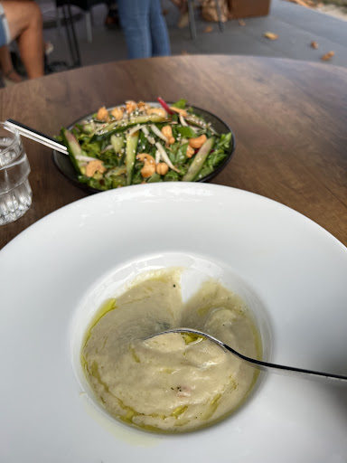 Service was incomprehensible: no one came to greet us and ask for drinks or to bring a menu. There weren't many other tables occupied, but others seemed to have the same issue.e We waited for a long time, then went to the bar area and asked for a menu. The woman there didn't want to give it, but asked a colleague through her headset to bring it. After another long wait, we went to the same person again and again asked for a menu. She did the same thing. After yet another long wait, we saw someone walking around with a menu, but without a clue where to bring it, so she started asking random tables, before finally ending up at ours.