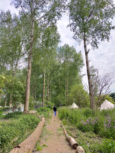 De plek ligt op een mooie locatie tussen de bossen en het gevoel van een buitenhotel wordt waar gemaakt. Er zijn verschillende verblijfplekken verspreid in het bos, de een wat dieper gelegen dan de andere. Het is handig om rekening te houden met de afstand tot het enige sanitairhuisje (met 2 toiletten en 2 douches).