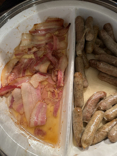 Other issues: • Room card stopped working TWICE. • Small, tired room with dated carpets, no bottled water, and minimal amenities. • Breakfast was really far below expectations: oil with a side of bacon (see picture), juice poured from cartons, and sour pudding. For a 5-star hotel, this was closer to a motel buffet.
