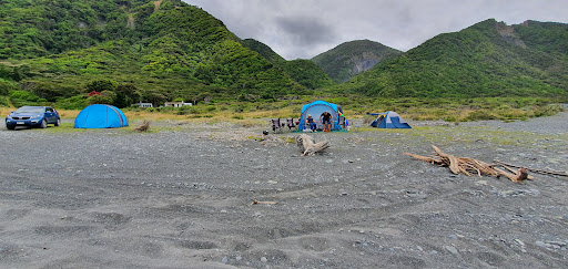 It's a DOC campground, it has two toilets (bonus!) and a shelter for cooking/eating. It might have been smarter to have a wall on the side where the prevalent winds come from 😁 The ground is riddled with stones and rocks, not always easy to get the pegs in the ground. The loos unfortunately also prove very popular with hunters and fishermen, who pull in at random times of day or night, leaving engines running and their mutts barking...