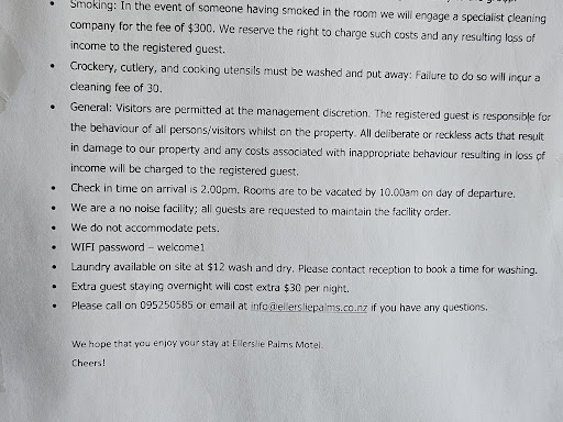 Read moreVery disappointed. As an elderly person arrived to find no reception only a phone number. Couldn't get in, no key to unit. Phoned number, couldn't get an answer, eventually call switched to another number still no answer. Son arrived he phoned couldn't get an answer, then after 7 training announcements about staff he got through. Person required credit card details & charged the full amount of the 3 night stay immediately, even before we had a chance to see the motel unit. There were electronic keys (found under a mat) so he could lock us out if he wanted. On entering we found the rooms dirty, large stains on furniture, the place smelt like it hadn't' been used/aired for weeks. The shower head was broken & barely usable. As we had already paid we had no choice but to stay only to find the shower head broke fully on the 3rd day & was unusable cheap & nasty. On returning home found extra charges on credit card that were not authorised. Complained & about the shower & was told we would get a refund of $20.00 which never happened. Whatever you do, "Do not stay here", Other reviews cited by the motel must be false if our motel unit was anything to go by. There is "ZERO" service, no one to complain to, & with your credit card already charged they have all the control. "Worst" motel I have ever stayed at in...