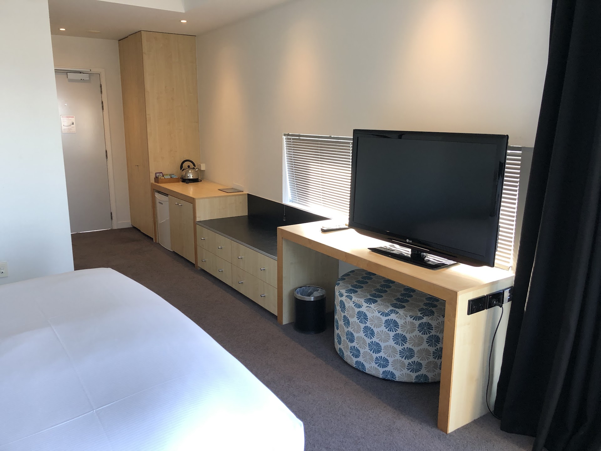 Read moreMy son and daughter inlaw warned me not to be here and I almost didn't book after the staff member was rude on the phone while booking. Upon arrival was greeted by a young staff member named Jack who was absolutely fantastic! Polite, courtesy, well presented and welcoming you need more Jacks working here. Room was basic, dated bathroom but clean and tidy. View was terrible from level 4 and lots of noise at night. Had to sleep with the window open because the heat pump remote didn't work to change the temperature which left us with either a hot room when pump was off or freezing when it was on. We utilized the restaurant twice, for dinner and breakfast and both experiences were disappointing to say the least. In the evening we ordered sour dough bread and the chicken tenders for starters which were a waste of time and money. $10-12 for two slices of bread was completely over priced and the chicken tenders were tiny, about the length and thickness of my thumb, and only 4 of them. Had the fish for our main which was nice but again over priced for 2 small pieces. Upon leaving the restaurant we asked the reception staff, an older European woman, if we could have a room service menu to which she proceeded to question as to why we wanted one when we had just left the restaurant. I had to explain that we may want dessert in the room later for her to finally hand one over. Bed was uncomfortable and again lots of noise from the road etc. We booked for the buffet breakfast at 9am which was a complete waste of time! EVERYTHING was cold including the tea! The potatoes tasted like they had been re heated from the dinner service left overs the night before, the toast was so cold the hard butter wouldn't spread and the eggs looked like they had been sitting out for some time. On the upside the location was superb which is what had attracted us to try before booking our staff and their families in for our weekend long company Christmas work function later this year. The shower was fantastic and powerful however the toiletries seemed to be half empty. Price was good at $220 and was excited to see they are pet friendly as we travel a lot to the Hawkesbay with our dog, however unfortunately wont be...