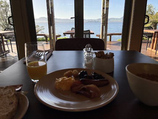 Read moreQuaint. We stayed in room 6 for two nights on our honeymoon. It is a Lodge so is not meant to be modern but more rustic. We thought the woodwork in the room fit that vibe and very much enjoyed a peaceful stay. Rooms 4-8 were in the upper building with a deck and is not lake front, but we liked our deck room & it felt more private. Our building with a kitchenette with a flittered water faucet, 2 larger fridges (small wine fridge in the room), glassware & dishes. We only ran into others around meal times as folks were coming & going. There are designated car spots that correspond with your room which was no issue for us and close to the building door. We very much enjoyed talking with the cook at breakfast and loved the sausage. It felt like a higher end continental breakfast that helped get our busy days going. We enjoyed the hot tub and sauna to ourselves though the Lodge parking seemed to be fully booked. We enjoyed seeing a black swan and black swamphen...