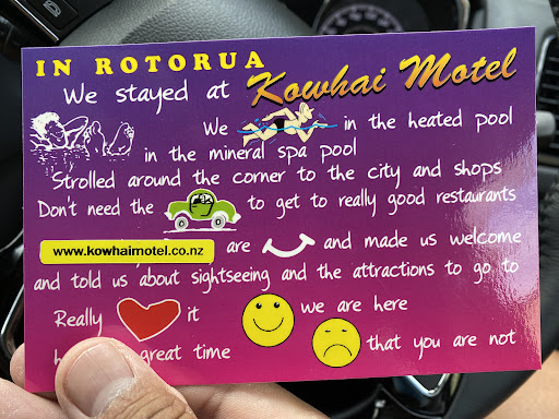 Read moreMy 2 older children and I rented room 12 with its private spa bath at the Kowhai and found it very quiet, private and relaxing despite being right on the edge of the busiest part of town! we loved the location of our room within the hotel right next to the large heated pool and 2 natural mineral baths. The complete kitchen with full sized stove and fridge was just like home. The beds were very comfortable and everything worked properly and the whole place is very tidy, clean and well kept. We especially enjoyed examining the exposed thermal plumbing running right into the ground and the little smokestacks and vent pipes with the volcanic crystals growing on them to let off the extra steam and hot water were such a treat to watch with their irregular eruptions. The smell only occasionally wafted in. The location of the hotel being close to the town centre is also great with everything you need in walking distance and private off street parking made us feel very secure. Free milk, coffee and tea were provided and the office staff are very friendly and...
