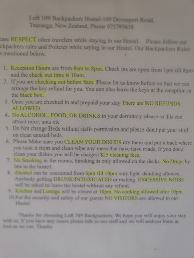 Read moreCan confirm they have weird rules in place such as only allowing alcoholic drinks between 6p to 10p. The owner apparently didn't know Kombucha is not a beer and almost went ahead and issued me a fine. Oh yes there are also fines for leaving you dishes, for making loud noises when drunk (OK these might be alright in enforcing displicine but is it legal?). The also charge 5 dollars for luggage storage. Given the price they charge (185 per week for 6 beds dorm) it's just outrageous. Only came here after seeing a job ("kiwifruit" planting, which is in reality kiwi orchard development, and you only got to plant shelterbelt plants) posted on backpackerboard, but be warned that these jobs they put out are only from firms owned by the owner's friend, and they want to make you feel you owe them the offer.