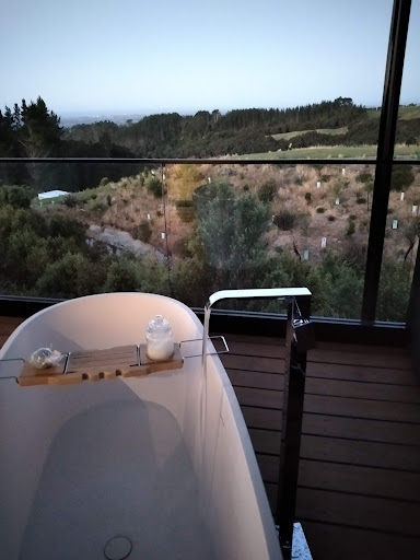 Read moreAbsolutely love the location nestled in a quiet area near the Mangorei trail overlooking gentle hills with beautiful vegetation. We stayed in the Tui Cabin with a Queen Bed and a Sofa bed (for our boys) The Cabin is built with perfection in mind, and the details are clear. From the outdoor bath with bath bomb and salt to wine and chocolate to complete the experience of glazing the stars in the hot bath 🌟🌟 Laundry and gym room are available for...