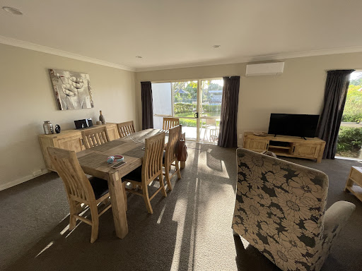 We have just returned home from a three week stay at the Pacific Palms resort, and are very happy with our experience. |The proprietors, Andy and Nikki, were wonderful to deal with. From the time we started the booking process through to our departure, they were friendly, helpful and patient. |The resort is well located, within very easy walking distance of grocery stores, restaurants, and other shopping. Although we did not make use of it, the bus service to Tauranga and other parts of Papamoa was also close by. |The resort grounds are beautifully landscaped and well appointed. We particularly enjoyed using the picnic area near the heated pool. |Our apartment was spacious and contained everything we needed to live comfortably in our “home away from home”. The living room furniture was a little dated and could have been a bit more comfortable, but we spent more time sitting in our unit (for personal reasons) than would be normal for someone visiting such a beautiful part of the world. |We would recommend the Pacific Palms resort, and would not hesitate to stay there...