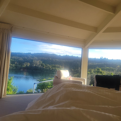 Read moreWe had a lovely 2 night stay at Solitaire Lodge. The property is beautifully set on the lake within the lush flora and fauna of the area. There is only one road in and out from Rotorua (20-30 minute drive depending on traffic or road works), with no other amenities along the route.||We pulled up to the gated entrance and Wayne buzzed us in, after which he met us outside to greet us and help with our luggage, however not before a quick tour of the property. We were also immediately offered some lunch or a platter to our room which was greatly appreciated.||The room itself was simple but elegantly designed, with fantastic views from the large windows out across the lake. The minibar was nicely stocked with drinks and snacks that we greatly enjoyed, especially the homemade biscuits. The bed was very comfortable, and it was a treat to have a bath outside on our balcony. The bathroom itself was simple, with a bidet, but the shower was consistent and powerful- one of the best we have used in NZ.||The communal areas were simple but comfortable, but could do with a refresh or some modernisation. Food was wonderful, and the chefs were had were greatly accommodating with any dietaries (or pickiness) we had. The lunch meal we had was our favourite of the visit. A special thanks to Ian for his service in the evenings and for making the best espresso martinis we had in NZ!||We could only find a few minor points with our stay: our room had a TV, but it was so small and the signal was so poor that we felt it actually detracted from the quality of the room, and it would have been better without. We would also have loved to have seen some local soaps/shampoos/conditioners in the bathroom, and the skylight in our bathroom was looking very old, mouldy and the paint was beginning to peel so this could have done with some TLC.||Finally, the decor and offerings feel well suited to an older clientele. However, the guests (including ourselves) at the time were all around their 30s. With that said, the stay would be enjoyable...