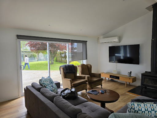 My wife and I and a bunch of her freinds stayed here for 3 nights. Its ideal! Its very clean, pretty new, well appointed and warm. Its very well organised - check in/out and stay instructions. It opens out E facing onto a reserve a few metres from the lake under 3 beautiful Oaks and Ginko. Not cheap but loads of beds and very suitable for a group. Highly recommended. There is also a fish and chip chop in the village with questionable service but great fish...