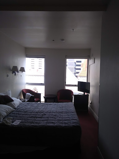 Apart from the guy on the front desk who was great, and the location this hotel sucks. Everything in our room was dirty. Switches and boards had a black layer on the top of them, walls and windows were filthy in both the bedroom and bathroom, the carpet looked like it needed replacing about 8 years ago, there were white stains on the blanket which I'm trying not to think about, every single piece of furniture was very chipped, dented and scratched and then we come to the bed. For a start, no beautiful headboard as the photos suggest, the hardest, oldest mattresses in New Zealand, possibly even the world. They push 2 single beds together to make a king,(which is normal) but because the beds have sagged so much and some of the springs have gone, there is no structural support at all, so you can't sleep anywhere near the middle. The room layout was very strange also, the wall lights and switches were nowhere near the bed but position as though the room should have one single bed. Moving on from sight to sound. I barely slept a wink due to the noise. We were on the 5 floor and even with the windows shut and both set of blinds down, you could hear everything that happened on the street below. Now we stayed on a Sunday night so I don't imagine it would be as busy as a Friday or Saturday night, which just begs the question of what guests staying those night have to endure. You could hear every other guests coming and going also. Overall it was an incredibly disappointing stay and I will definitely not be staying here again. Bare in mind with my photos my camera has an autofilter so it is showing the room in...