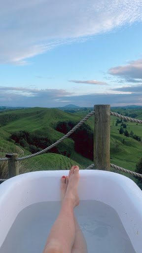 But wow, what a magical stay, the baths overlooking NZ farmland, the outdoor movie projector, the fire pits around the tents glowing at night and the big plush bed that we spent a lazy day reading in - All receive a big five stars from us.