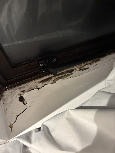 • Unfinished Window: One window was covered with papers taped around it, making it unpleasant from both the outside and inside.