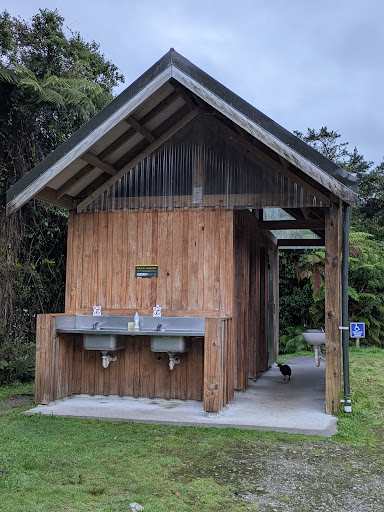 If you think you've missed it-keep going! This site is quite a drive from the main highway but well worth it. It's beautifully secluded with plenty of pitches, well serviced modern toilet and washing block. We had a s/c campervan but did use the toilet facilities which were clean and well kept. Payment is via an envelope DOC system and price per night was very cheap and excellent value for money. Saw pukekos running along the trackside on the approach in and cheeky wekas were straight in there investigating the camper as we arrived. These flightless birds are very friendly and bold - lots of photo opportunities! Great place with information boards about the gold mining history around which the campground is located, free gold panning equipment to try your luck nearby - just return when finished with. We weren't able to visit the Glowworm dell nearby but this is another attraction near to the...
