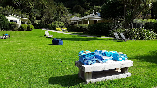 If you can get a reservation here, GO! We stayed at Mahana Lodge on Day 2 of hiking the Queen Charlotte Track. The setting is exquisite - a broad lawn dotted with beach chairs, picnic tables and bean bag chairs leading down to a gorgeous little bay. You can swim or take kayaks out.||In the lodge itself (slightly up the hill from reception/manager's house) has four comfy rooms each with an en suite bath surrounding a very comfortable central lounge area that also has outstanding water views. The lounge has a kitchen area with complimentary continental breakfast items (cereals, fresh eggs, toast, yogurt, etc).||But the very best thing about Mahana is the Chef's Table dinner. David (our host) is a chef and enjoys creating outstanding and inventive 3-course farm-to-table dinners a la Paul Prudehomme's Chef's Table in New Orleans. It was one of the best dinners that we've had in all five of our trip to New Zealand. We started with an amazing salmon rillette, then went on to a divine lamb (falafel for the vegetarians) with three gorgeous veggie dishes each elevated from its humble origins with creative preparations (the local cheese was heaven!) and a delicious lemon tart with a Madagascar lime curd. David has excellent local wines for sale by the glass or bottle (beer too) at very reasonable prices. It was a delight to be a guest at his table...