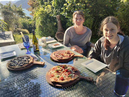 3 couples came together here to celebrate 5 50year birthdays. The accommodation was perfect to relax and catch up. Chilled, laid back, relaxing. My hubby arrived after 3 and claimed the summer house bedroom and the other 2 couples shared the yurt. Everything was perfect. Ian the host left us to it and went swimming. We had travelled from Wellington so rested a bit. The hot pool was ready and Ian offered to cook pizzas for dinner which was good as everyone didn't feel like cooking although we bought enough food. Friday it rained on and off but we managed to walk down to their beach and pick some oysters at low tide. We drove to Portage to watch Friday night rugby and had a buffet dinner. It was nice but we probably would have liked the Punga cove option although it was raining. On Saturday, we thought we should walk 30mins up to the Queen Charlotte track and maybe walk to the inlet view but Ian encouraged us to go to Punga cove, a 4 hour walk. So 3 of us grabbed some water and a wallet and ran/walked. There were a few good hills but it was worth it for the beautiful views and the craft beer at the end in Punga cove. One wife was the driver to come get us. Ian gave us such a great option to get us exercising. The other couple were going to use the kayak but the tide was going out. Breakfast was provided every morning with Ian making croissants and amazing bread. We cooked our lunches and dinner in the gas oven and used the charcoal bbq. On our last night Ian and the 2 dogs took us to see the glow worms by the stream. This was amazing. Ngahere hou is perfect if you are on the track. The drive in was windy roads so slow going if you get motion sickness. That made me want to stay for longer. Ian was the perfect host and we would love to bring the girls if we do that track...