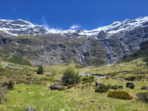 Really nice drive in, up the Ohau Lake and through farmland. The campsite is the starting point for the Temple Valley North Branch track. This hike is all about the stunning basin at the end. Unfortunately we never made it to there. This was due to missing an orange marker at a river crossing which diverted you past some windfall and we ended up on the bait track instead and decided to turn around then and head back. Up to that point the track was easy going enough...