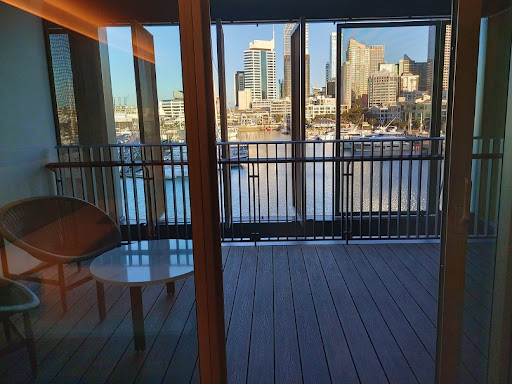 Blinds control your privacy in your room and the balcony is very large and private. Since the hotel was new there were very few guests but the restaurants were busy. Not all were open (of the 4) but the prices were the same or less than what you'd pay at the nearby wynyard quarter area.