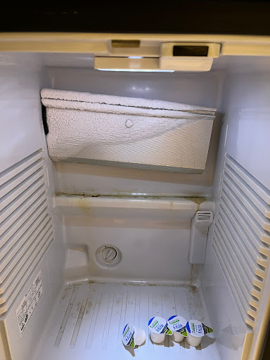 Even with the upgrade, the room itself was underwhelming. The bathroom and furniture were tired, the fridge was dirty, and there was rubbish under the bed. Cleanliness and upkeep were clearly not a priority.
