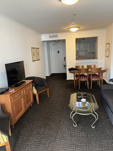 So kudos to that one lady who seemed to genuinely care, but this whole place needs an overhaul. Feels like you're staying in what's mostly an (older) apartment building not a hotel and you can definitely tell given that your view is mostly of newer towers of similar make-up.