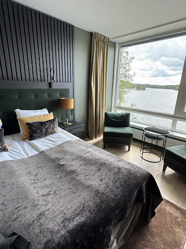 Rømskog Resort & Spa sits on a beautiful lake surrounded by Norwegian forest. Idyllic setting! Before I even arrived, my experience booking online and then adding an upgraded package and spa treatments over the phone was seamless. Soon after checking in I had a relaxing facial and foot massage which was the perfect start to my stay. After my spa appointment I enjoyed a custom mocktail by the lake to enjoy the view and take in the sounds of the water and birds. The outdoor pool temperature was perfect, warm but not too hot. I counted at least three outdoor saunas and there were several indoors as well - options for all year round. They also offer lots of outdoor activities including ropes course (geared toward adults), stand up paddle boarding, canoeing, and have maps for several walking trails nearby. It was a bit cold and rainy during my stay so I stuck to the spa mostly! Dinner at Rømskog was perfection and the breakfast buffet was wonderful. The bed was very comfortable and equipped with plenty of pillows (much appreciated). They have a great training room! It is not the newest but they have much more equipment than I expect from most hotels and it was great to get a workout in before getting in the pool.