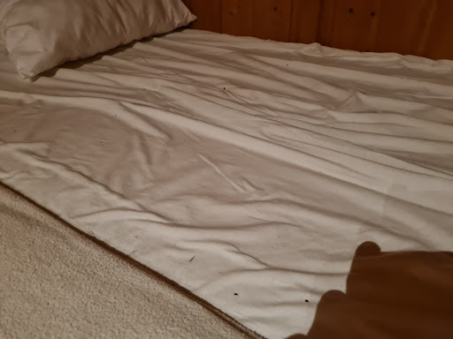 The sheets looked filthy, maybe washed but the sheets should have been replaced. They are missing some cutlery, obvious cutlery. Well, the hygiene in general is pretty lousy. I wish I took more pictures.